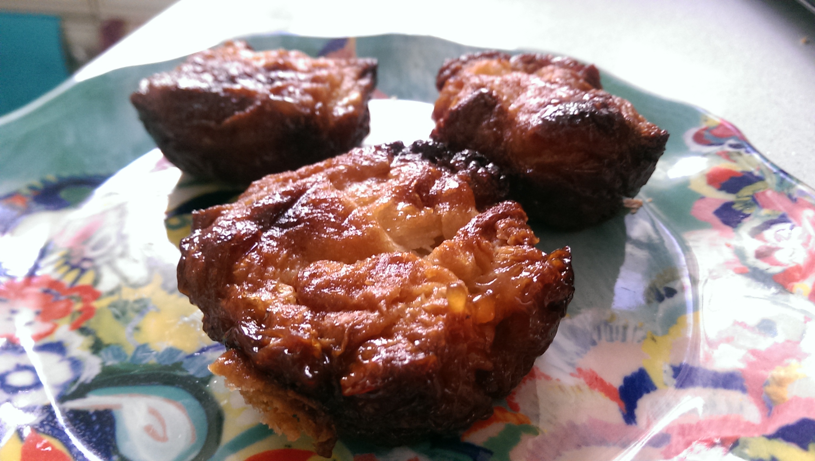 ps with the leftover dough scrape (from folded dough as opposed to cleaned up dead-dough ends) i rolled with sugar and made into kouign-amann. this is sort of like the canele though since I’ve never had one and not sure how they turned out. how they turned out is slightly caramelized, sugary (albeit ugly) croissants, which weren’t bad at all.